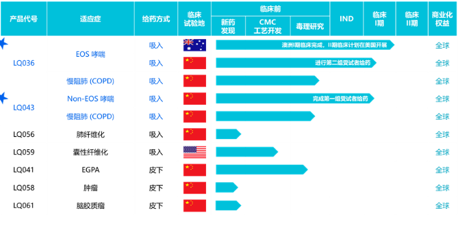 凯发K8天生赢家一触即发生物的研发管线中,还包括治疗肺纤维化的LQ056和治疗囊性纤维化的LQ059,同样采用吸入给药。